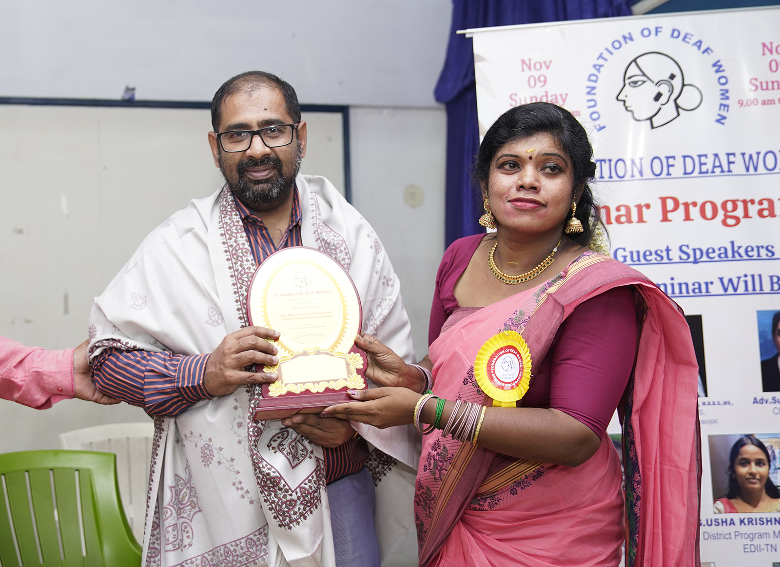 A seminar on the Rights of Persons with Disabilities (RPWD) Act, 2016 was conducted on 16 November 2025 at St. Louis College for the Deaf, Adyar, Chennai. The programme aimed to create awareness about the rights, benefits, and legal protections available under the RPWD Act for persons with disabilities. Around 150 deaf participants actively attended the seminar and gained valuable knowledge about education, employment, reservation, and social security provisions. The event was successfully organized by the Foundation of Deaf Women under the leadership of Ms. Meena, President, and Ms. Lavanya, Secretary. The seminar encouraged empowerment, inclusion, and equal opportunities for the deaf community.