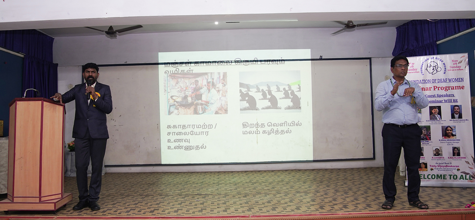 A seminar on the Rights of Persons with Disabilities (RPWD) Act, 2016 was conducted on 16 November 2025 at St. Louis College for the Deaf, Adyar, Chennai. The programme aimed to create awareness about the rights, benefits, and legal protections available under the RPWD Act for persons with disabilities. Around 150 deaf participants actively attended the seminar and gained valuable knowledge about education, employment, reservation, and social security provisions. The event was successfully organized by the Foundation of Deaf Women under the leadership of Ms. Meena, President, and Ms. Lavanya, Secretary. The seminar encouraged empowerment, inclusion, and equal opportunities for the deaf community.